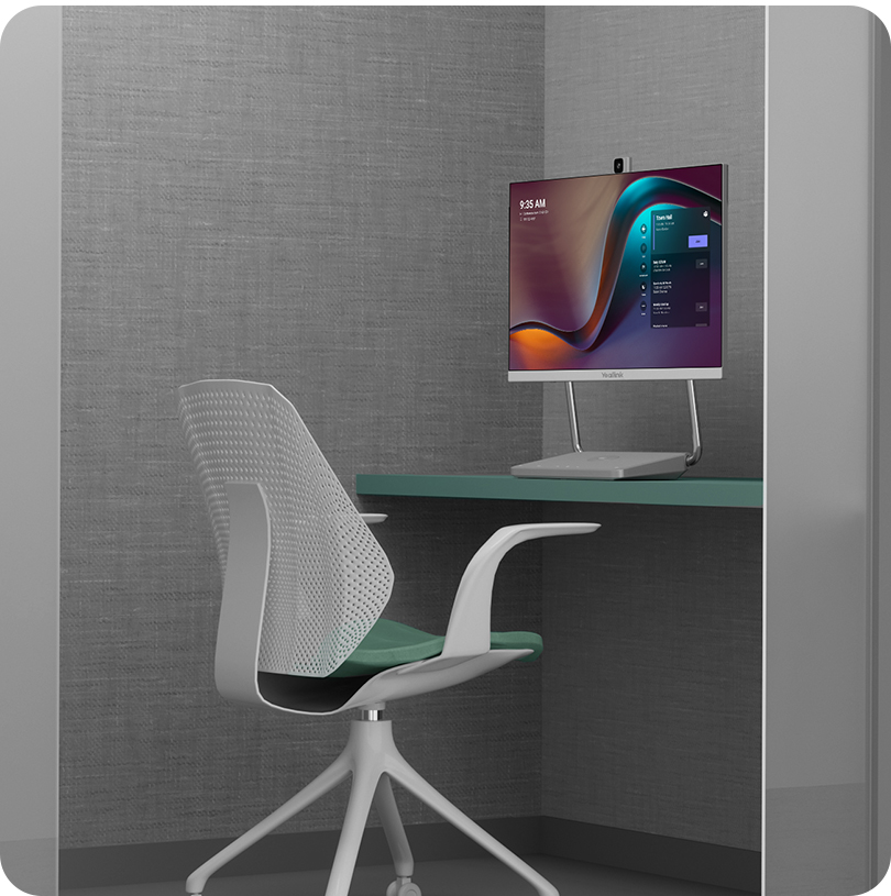 When deployed as a Microsoft Teams Rooms device, DeskVision A24 is not only easy to set up and manage but also perfectly transforms a phone room into an engaging, immersive hybrid meeting space, where you can instantly join meetings and engage the audio and video equipment with one touch.
