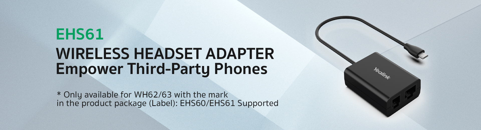 The advanced Yealink Headset Adapter EHS61 provides a technical interface between your Yealink DECT Headset and a compatible desk phone (Mitel/Unify/Poly/Yealink T2X&T4XG).