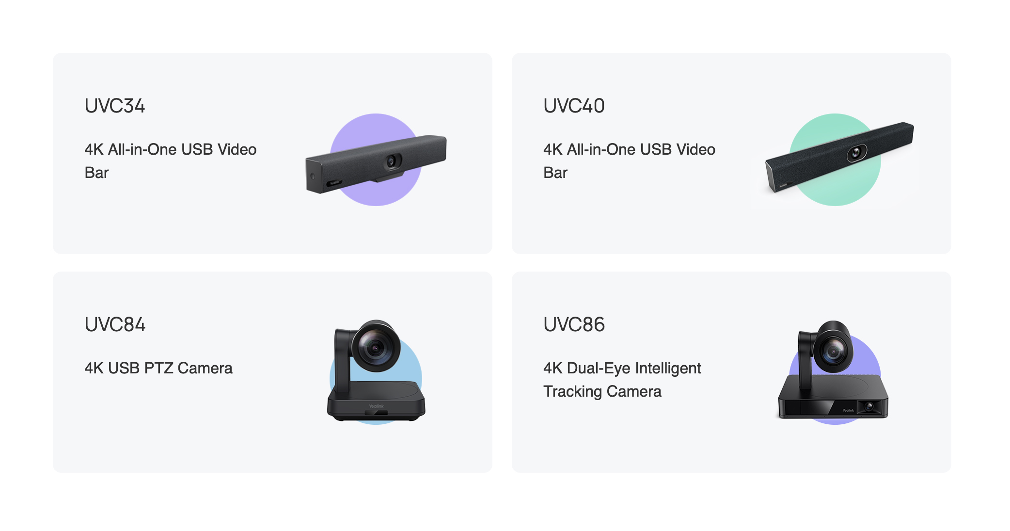 The Yealink MCoreKit-C5-ZR system provides flexible video solutions. Choose from a variety of video conference cameras, such as the UVC34 and UVC40 all-in-one USB video bar, the UVC84 USB PTZ camera, and the UVC86 dual-eye intelligent tracking camera to suit different meeting rooms.