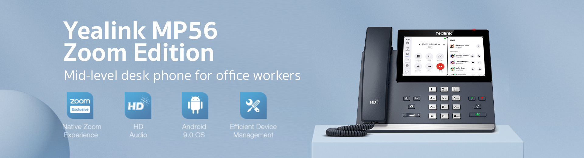 Yealink MP56 supports efficient auto-provisioning mechanism of phone deployment and configuration, allowing the administrators to take advantage of centralized deployment, management and update. Moreover, the MP56 is compatible with several device management platforms, including Zoom/Yealink Device Management Platform.
