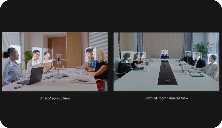 Introducing the Multi-Stream IntelliFrame feature, which provides individual video feeds of up to four in-room active speakers while showcasing the panoramic view of the room. The feature enables everyone at the conference table to appear front and center on the screen crystal-clear.