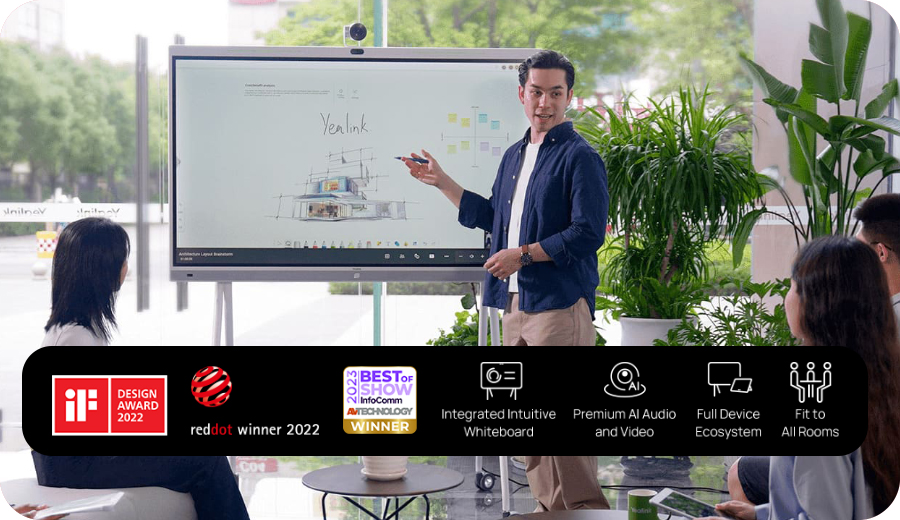 Yealink MeetingBoard consists of a 4k camera, crystal-clear speaker, full-duplex microphones, and a 65/86 inch smart collaboration whiteboard It has a conference meeting room video Display doubles as a whiteboard Writing function to provide an immersive meeting experience and allow collaboration anytime, anywhere.