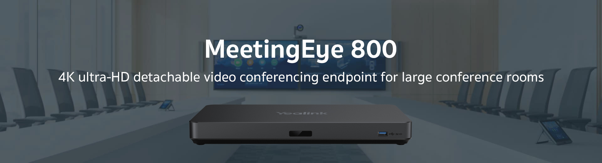 MeetingEye 800, a new-generation video conferencing endpoint designed by Yealink for large conference rooms, supports "dual 4K" video calling and content sharing, bringing an ultra-HD experience. MeetingEye 800 video conference system supports three screens to display different pictures at the same time, presenting rich information.