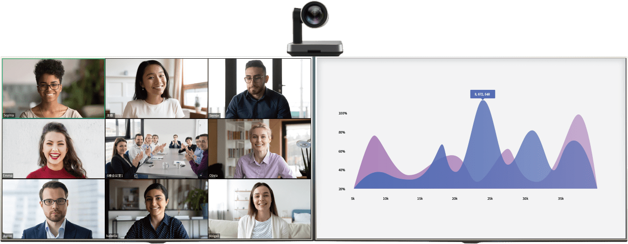 MeetingEye 800 supports up to 4K portraits and 4K content pictures during video conferencing,