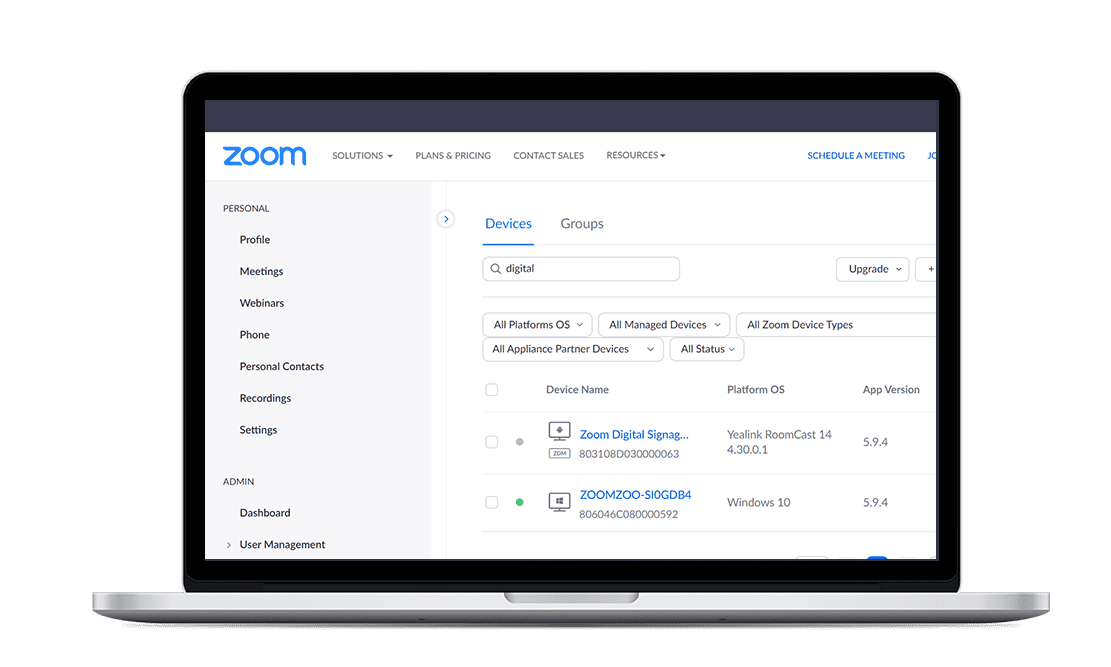 Users can manage and diagnose RoomCast Zoom remotely on the Yealink Device Management Platform or Zoom Device Management.