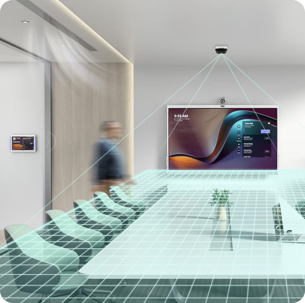 RoomSensor Pro recognizes both dynamic and static individuals, enabling precise people counting. It reports data to RoomPanel/Plus for intelligent room occupancy or release, aiding administrators in optimizing the management of conference room resources. The number of people will be prominently displayed on the RoomPanel for easy monitoring.