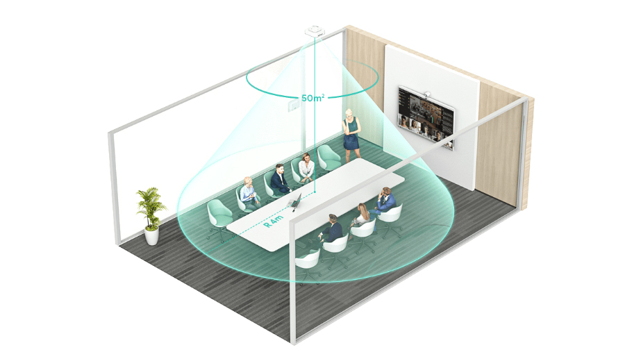 Covering an impressive 50 square meters, a single RoomSensor Pro effortlessly fits in small to medium-sized meeting rooms. Furthermore, it can be paired with up to 4 RoomSensors* to expand coverage and meet the demands of larger conference spaces.