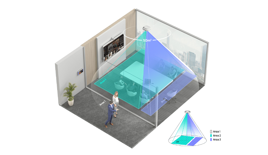 Customize up to 8 detection zones, like Area 2 and Area 3 shown in the picture, within RoomSensor Pro's detection range (Area 1). This ensures the best performance in different conditions and meets specific local detection needs.