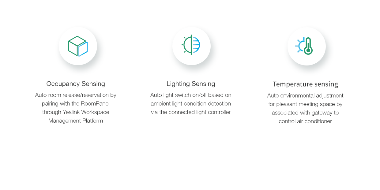 The RoomSensor is eligible for coordinating and linking with other intelligent IoT terminals, bringing features such as automatic check-in, lighting control, meeting room release and so on, to transform the traditional meeting rooms into smart workspace.