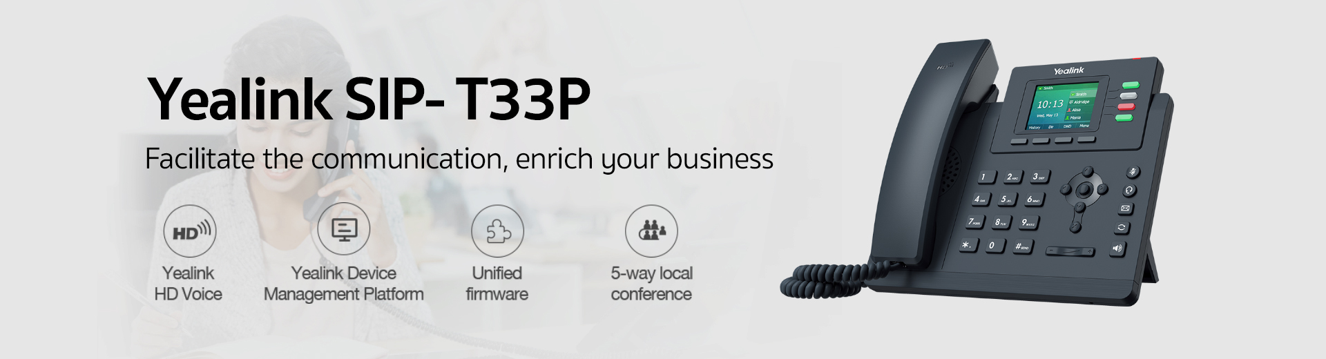An entry-level color screen IP phone with high performance, Yealink SIP-T33G offers support for 4 lines and includes local 5-way conferencing. For its fashionable appearance as well as an extra-large 320x240-pixel color display with backlight, it brings comfortable operation experience and clear visual experience for users. Designed with a new powerful chip, it helps greatly improved work efficiency. Additional features include a dual-port Gigabit Ethernet with integrated PoE, EHS35 support for Yealink wireless headset, and adjustable multi-angle stand support. These features allow the SIP-T33G to be a high-quality but cost-effective classic IP phone that maximizes productivity in both small and large office environments.