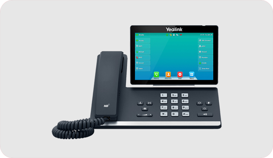 Especially designed for busy executives and professionals, Yealink SIP-T57W is an easy-to-use Prime Business Phone with an adjust- able 7-inch multi-point touch screen that you can not only easily and flexibly find the comfortable viewing angle according to the per- sonal and environmental needs, but also get a rich visual presentation and easy navigation with just one-touch. With the built-in Blue- tooth 4.2 and the built-in dual band 2.4G/5G Wi-Fi, the SIP-T57W IP Phone ensures you to keep up with the modern wireless technol- ogy and take the first chance in the future wireless age. Its built-in USB 2.0 port allows for USB recording or a direct wired/wireless USB headset or up to three Yealink EXP50 expansion modules connection. Benefitting from these features, the Yealink SIP-T57W is a powerful and expandable office phone that delivers optimum desktop efficient and productivity.