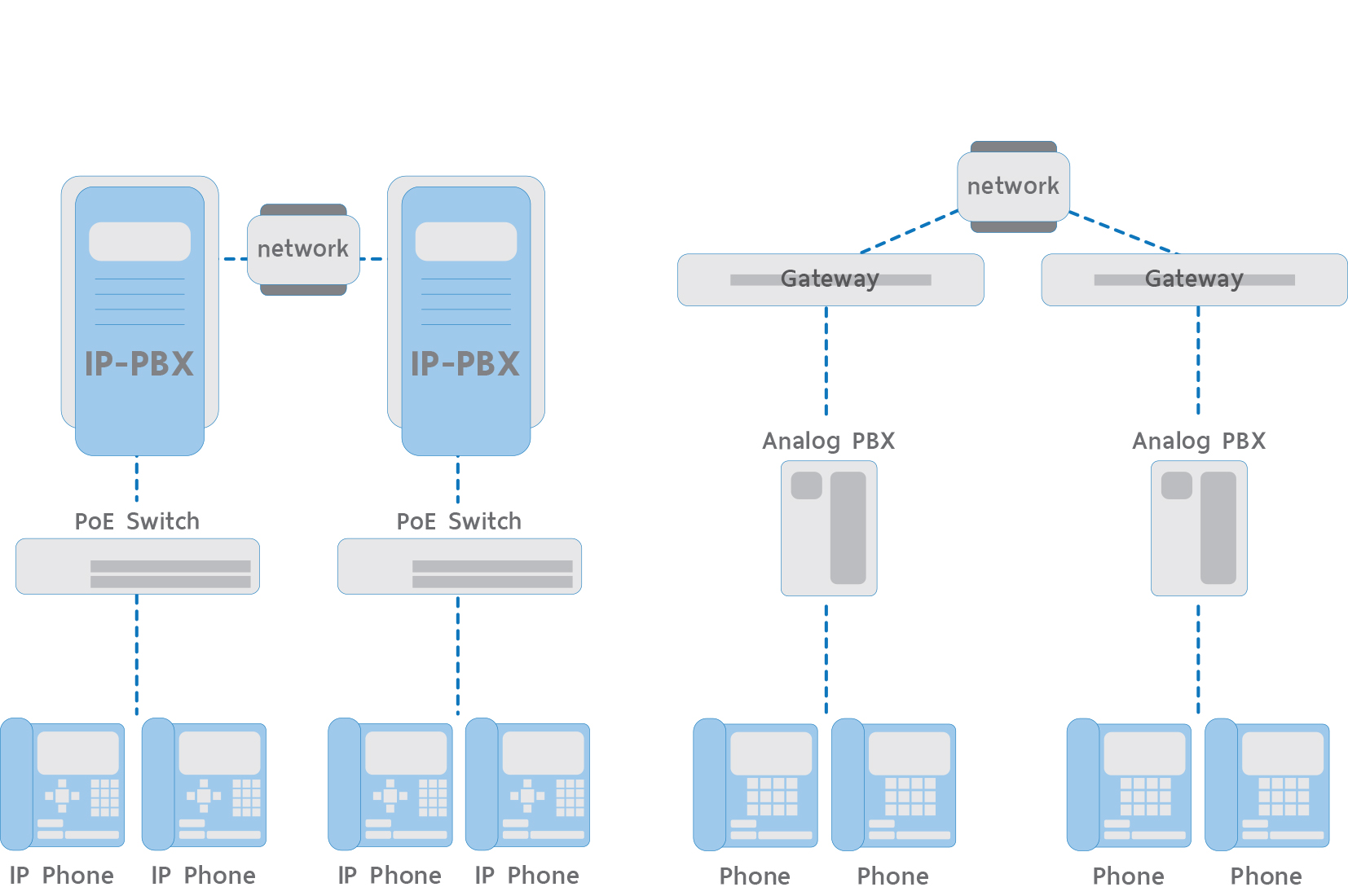 - องค์กรที่ต้องการเปลี่ยน จากตู้สาขาแบบเก่า (PABX) เป็นตู้สาขาแบบใหม่ (IP-PBX)