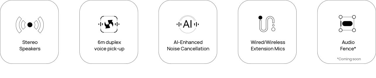 To ensure a smooth and distraction-free virtual meeting, SmartVision 40 provides high-qualityfull-duplex audio with AI-Enhanced Noise Cancellation and Reverberation Suppression.