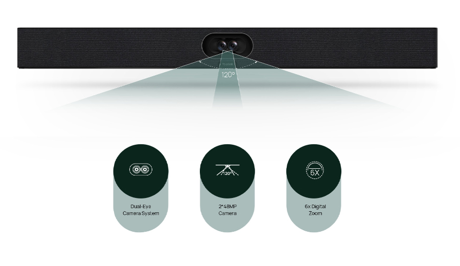 The dual-eye camera system ensures exceptional image clarity. With lenses directed toward each side of the participants, it offers a superior viewing angle, while its 48MP cameras effortlessly cover long distances, delivering high-resolution images even at extended distances.
