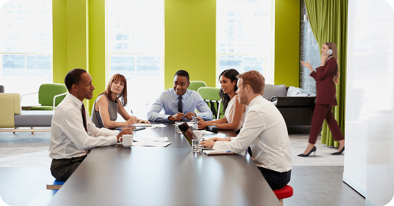 The Virtual Background feature eliminates the background distractions and gives everyone an equal seat in a video conference. See your colleagues as if they are sitting next to you.