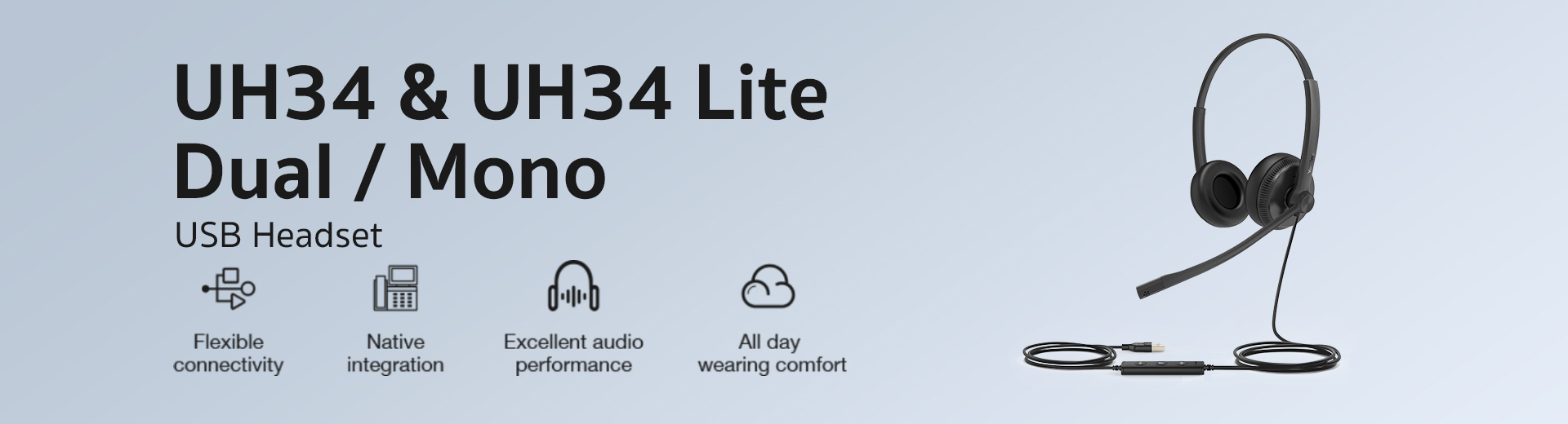 With full capability, the UH34 only weights 82.5g for the Mono and 118g for the Dual, which is 10%-30% lighter than other headsets in the same range. The extremely lightweight design enables all-day wearing comfortable without pressure.