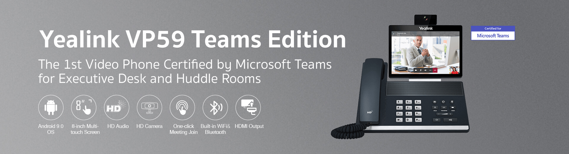 The Yealink VP59 Teams edition video phone is designed as an executive desk phone and also can be used in huddle spaces.