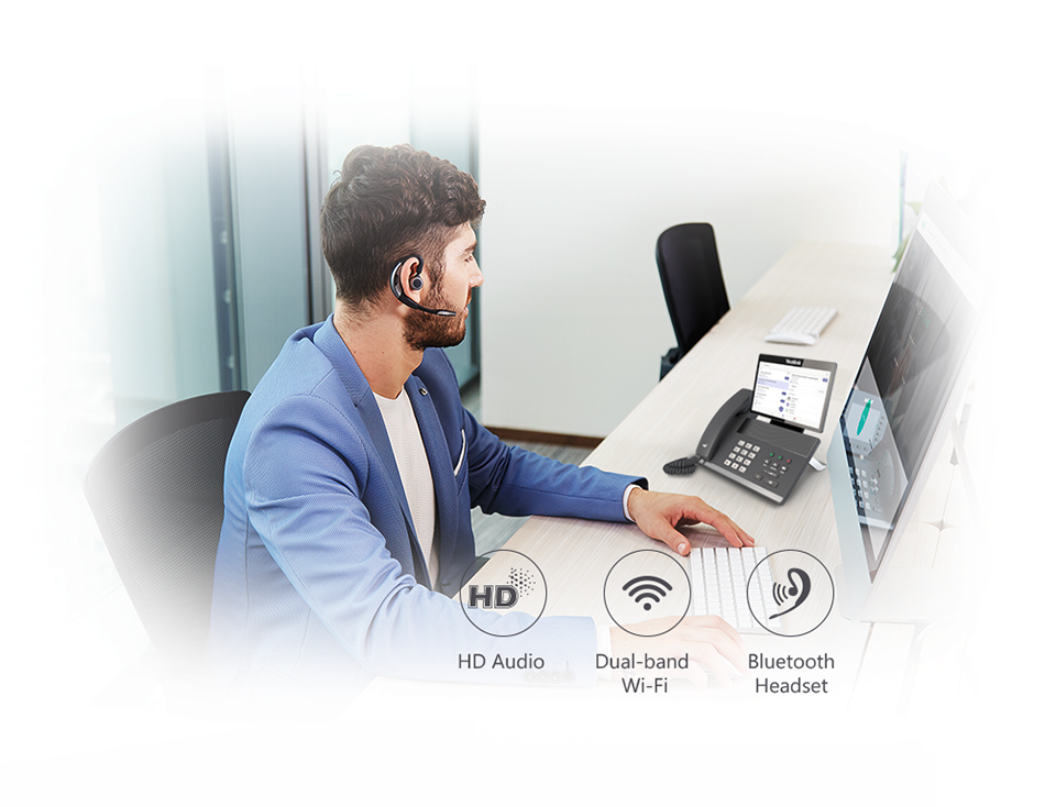 The Yealink Optima HD Voice and Yealink Noise Proof technologies deliver a marvelous audio clarity. Users can work and talk freely without noise or other disturbances. The built-in Bluetooth 4.2 and dual band Wi-Fi support a Bluetooth wireless headset and wireless microphone for a longer voice pickup distance, bringing great functionality for personal workstations. With the VP59, users can talk hands-free or enjoy more wireless desk-working experience.