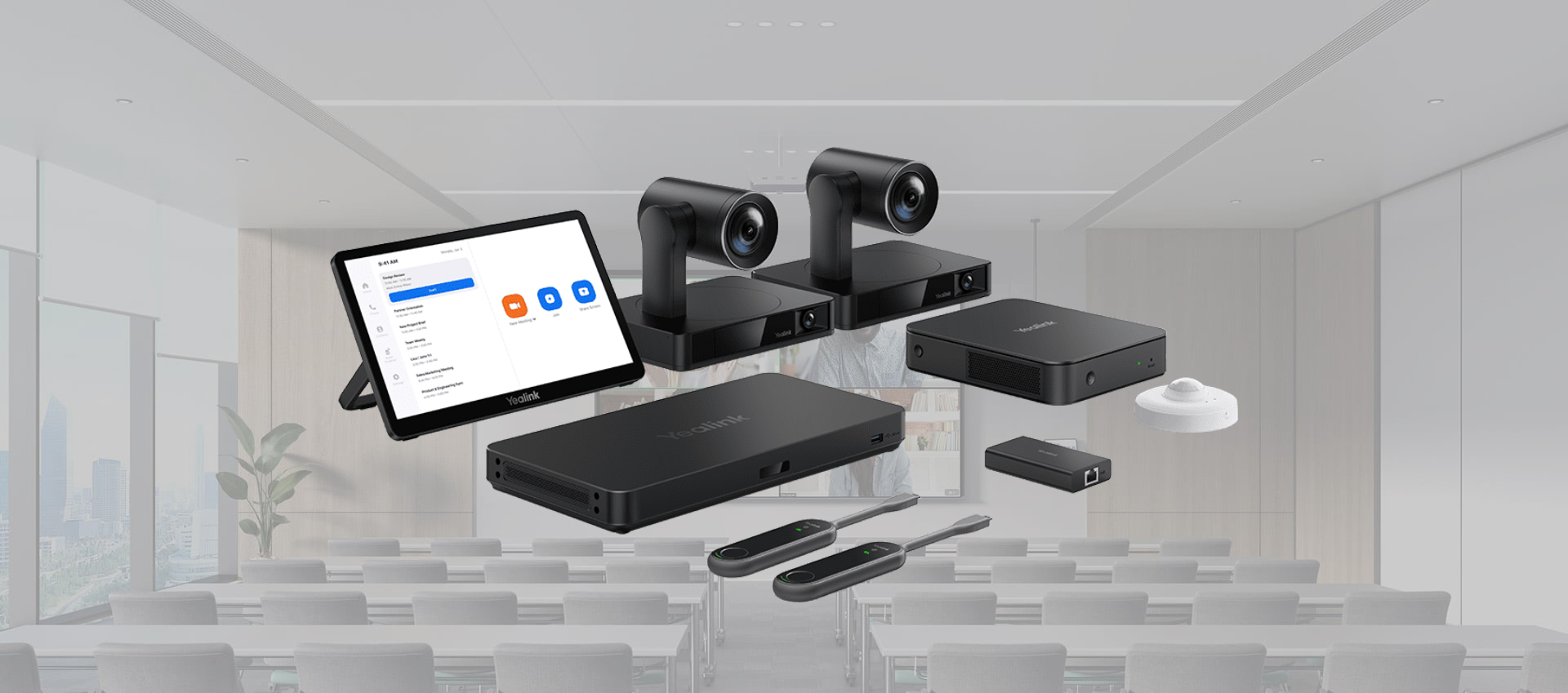 Designed for extra-large rooms, the ZVC S90 Zoom Rooms kit features UVC86 intelligent multi-camera system, MCore Pro mini-PC, MTouch Plus touch panel, AVHub, BYOD-Extender, RoomSensor, and WPP30 4K wireless presentation pod, delivering a fully immersive meeting experience that caters to both remote and on-site participants.