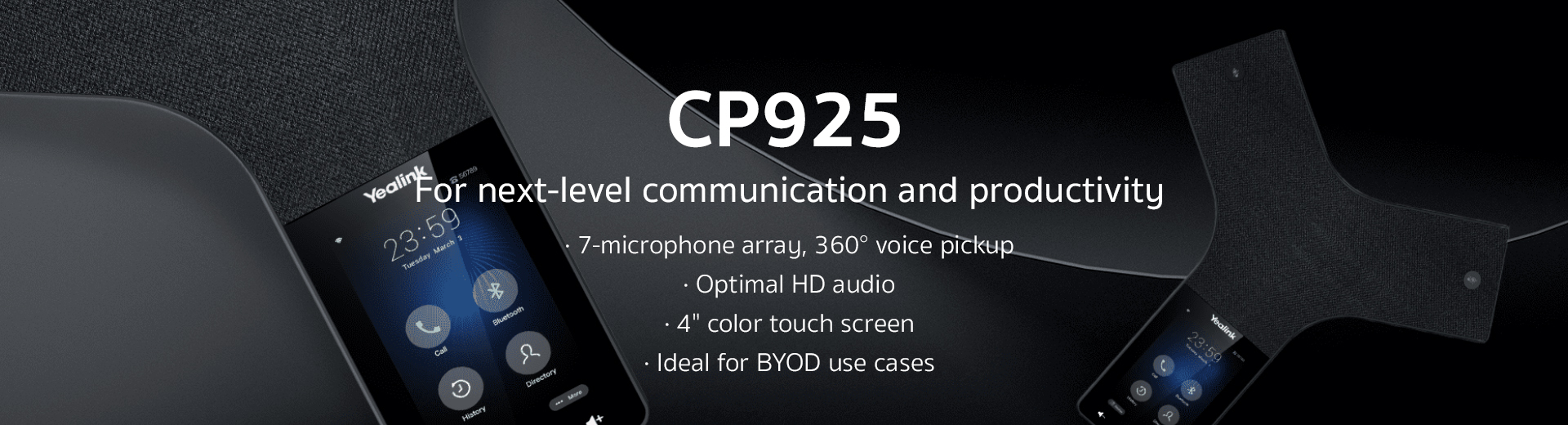 The audio performance of CP925 is powered and enhanced with the built-in 7-microphone array for voice pickup and noise cancellation. Covering a range of 20-foot with 360° omni-direction, the phone is adequate to deliver clear and natural voice conference experience.
