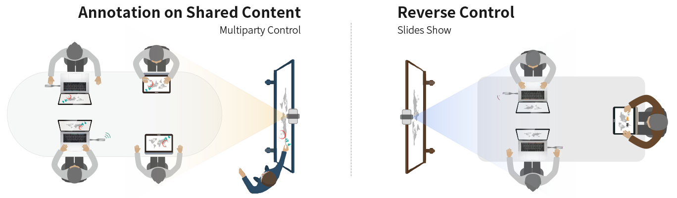 CTP18 can be used to obtain the projection screen and annotate it. With Yealink Wireless Presentation Pod WPP20, you can gain reverse control from CTP18 over computer, getting a multi-screen interaction to achieve more. A single video conferencing device can be connected to up to 4 CTP18, which can be used for simultaneous annotation to improve efficiency.