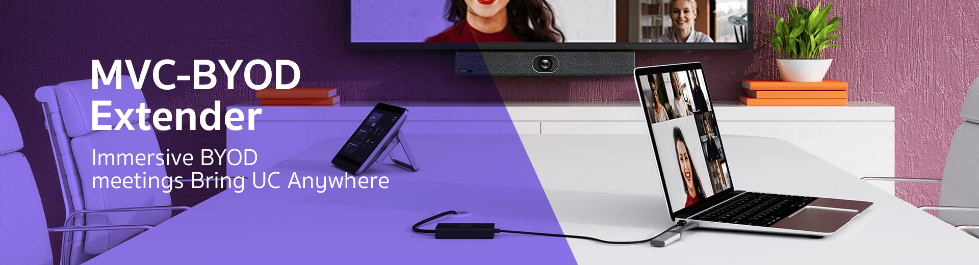 Yealink MVC-BYOD-Extender supports the transformation between Microsoft Teams Rooms (MTR) and different types of UC platforms. Just bring your own device and plug in the extender USB cable to start a video meeting wherever you want.