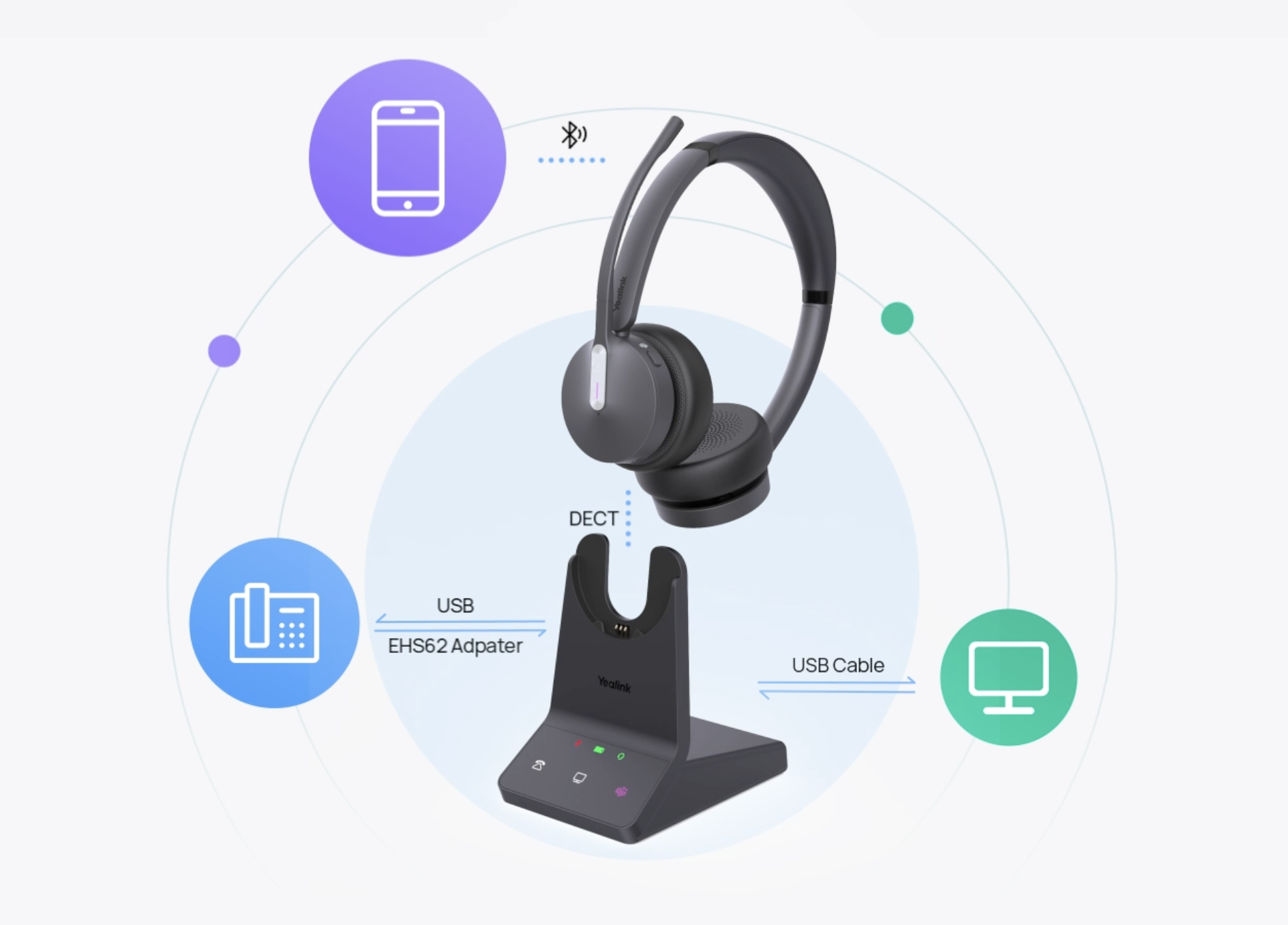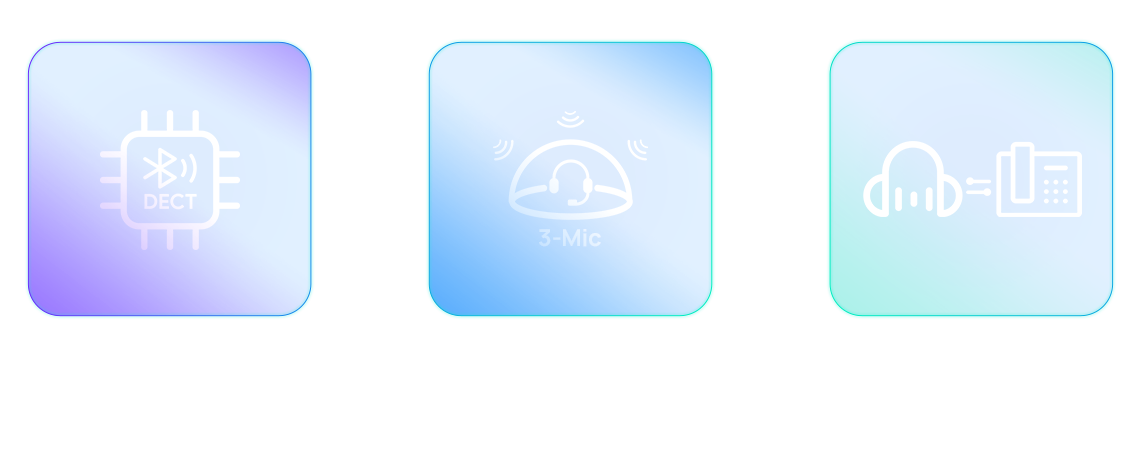 DECT & Bluetooth hybrid wireless technology. Dual wireless mode caters to flexible working styles. The Bluetooth technology integrated into the DECT headset retains the advantages of DECT while overcoming mobility limitations.
